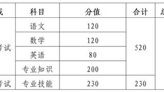 春季高考统一考试包括“知识”和“技能”两部分,考试科目和分值如下表: